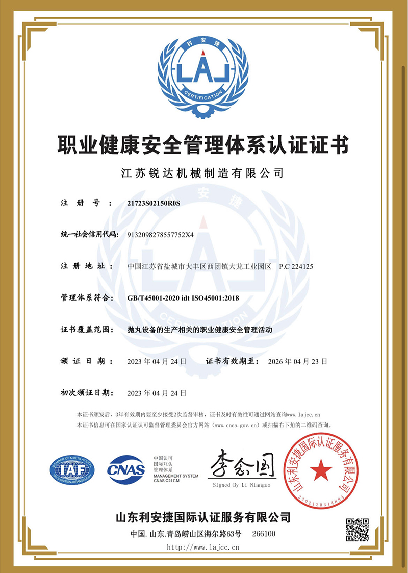 職業(yè)健康安全管理體系認證證書(shū)